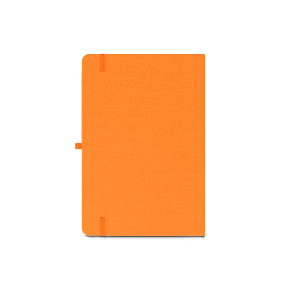 Zápisník A5 s pevným obalom z recyklovaného polyesteru (100% rPET) 300D a zaoblenými rohmi. Obsahuje 160 riadkovaných strán zo 100 % recyklovaného papiera vo farbe slonovej kosti, oddeľovací prúžok, držiak na biro (nie je súčasťou balenia) a gumičku na zatváranie. Symbol rPET je vytlačený bielou farbou v spodnej časti chrbta. 143 x 211 mm