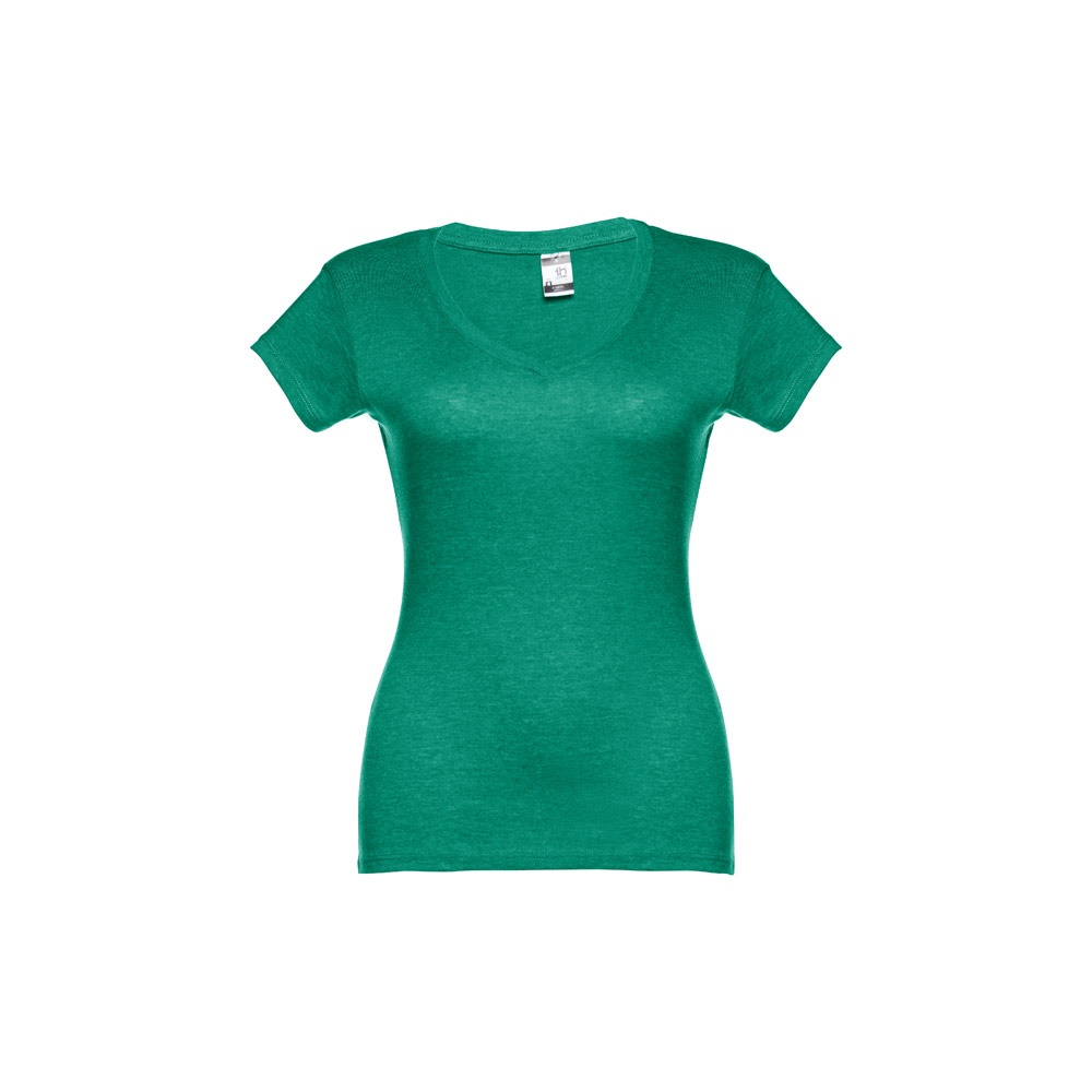 Dámske džersejové tričko zo 100% bavlny (150 g/m²). Farby 94, 95 a 99: 60% bavlna a 40% polyester. Tričko má krátky rukáv, výstrih do V s prekrytím, vystužené lemovanie a dddžersejový golier. Má dvojité prešitie na rukávoch a spodnom leme. Šité po stranách Veľkosti: S, M, L, XL, XXL