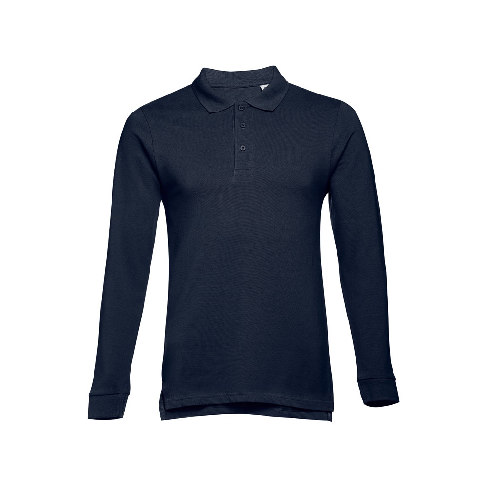 Pánska polokošeľa s dlhým rukávom zo 100 % bavlneného pique (210 g/m²). Farba 83: 85 % bavlna a 15% viskóza. Rebrovaný golier a rukávy, rebrovaná výstuž na golieri a vystužená léga s 3 farebnými gombíkmi. Spodná časť s bočnými rázporkami. Náhradný gombík vo vnútornom šve. Šité po stranách. Veľkosti: S, M, L, XL, XXL