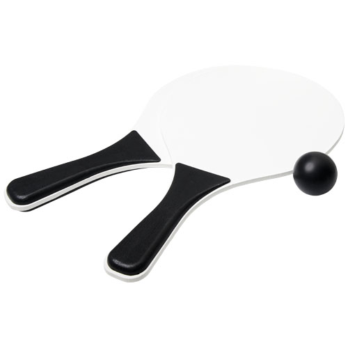S touto plážovou hernou sadou, ktorú ponúkame v rôznych farebných prevedeniach, zažijete množstvo zábavy. Táto odolná plážová herná sada je vyrobená z dosiek MDF, držadlá sú vyrobené z farbeného PP. Výrobok je dodávaný spolu s mäkkou loptou rovnakej farby v sieťovom obale, ktorý umožňuje ľahké prenášanie a manipuláciu na pláži. Varovanie! Nevhodné pre deti do troch rokov. Malé guličky. Nebezpečenstvo udusenia.