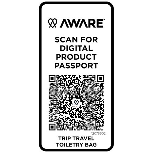 Cestovná toaletná taška Trip Aware™ z recyklovaného materiálu je kompaktná a štruktúrovaná taška navrhnutá na úhľadné usporiadanie osobných vecí na cestách. Taška je vyrobená z keprového polyesteru 290D s pleteným podkladom a podšívkou z RPET 210D/PU a má čistý dizajn s praktickými priehradkami. Hlavná priehradka obsahuje vnútorné vrecko na zips na menšie predmety, zatiaľ čo spodná priehradka v tvare mušle uchováva nevyhnutnosti oddelené pre ľahší prístup a lepšiu organizáciu. Každá taška je tiež dodávaná s indikátorom Aware™. Táto inovatívna funkcia umožňuje používateľom sledovať pôvod a cestu ich položky prostredníctvom QR kódu, čím zvyšuje transparentnosť v dodávateľskom reťazci a podporuje pevnejšie prepojenie medzi produktom a jeho výrobným procesom. Objemová kapacita: 6 litrov.