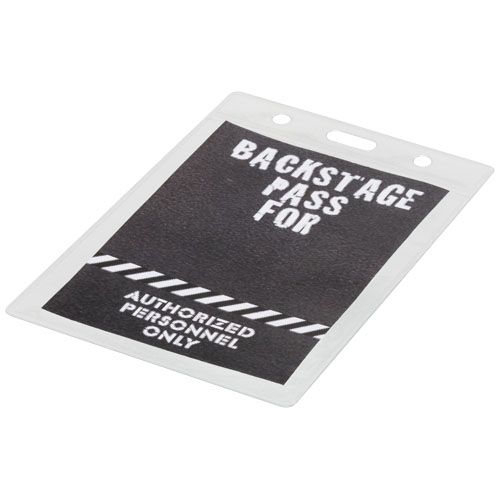 Držiak menoviek s vložkou na zadnej strane a otvorom na hore pre pripojenie lanyardu alebo rolovacieho klipu.