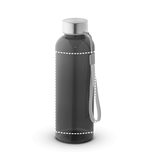 Fľaša z recyklovaného PET (100% rPET) s priesvitným lesklým povrchom. Nepriepustné veko z nehrdzavejúcej ocele s polyesterovým lankom pre jednoduchú prepravu. Kapacita až 600 ml. ø65 x 210 mm