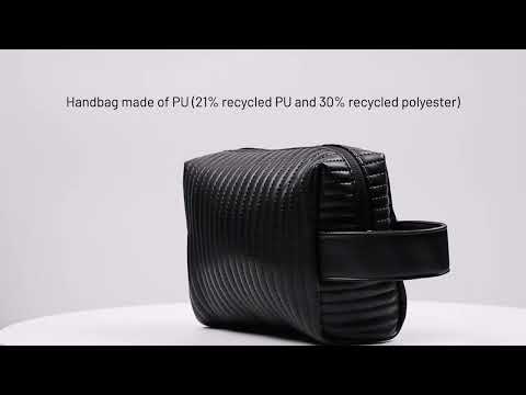 Taška vyrobená z recyklovaného PU (21 % recyklovaného PU a 30 % recyklovaného polyesteru) s prešívanou textúrou a podšitá mäkkým recyklovaným polyesterom. Bočná rukoväť a predná lišta z PU pre jednoduché nastavenie. 180 x 140 x 80 mm
