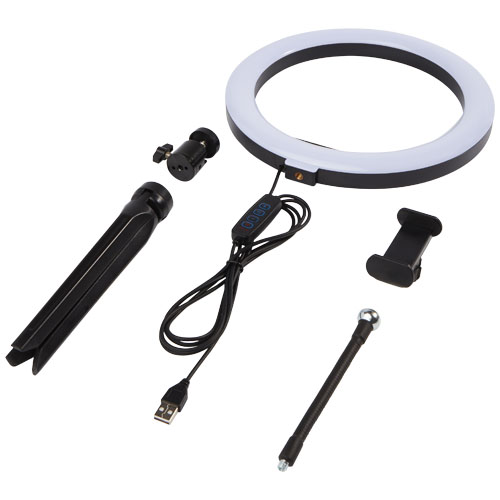 Kruhové LED svetlo (23 cm) so statívovým stojanom a držiakom telefónu, ideálna pomôcka pre každého fotografa/YouTubera/vloggera/ tvorcu obsahu, ktorý pravidelne streamuje alebo vysiela. Kruhové svetlo vrhne na vašu tvár rovnomerné svetlo bez akýchkoľvek tvrdých tieňov. Lampa má 120 teplých bielych LED diód, ktoré je možné nastaviť na 10 rôznych úrovní jasu pre dokonalú expozíciu svetla. Dodáva sa v darčekovej krabičke Avenue.