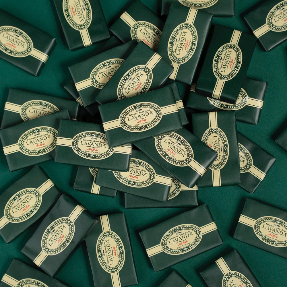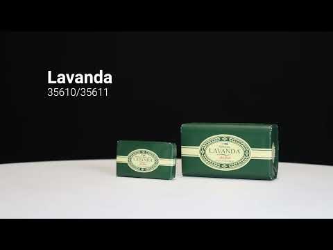 Mydlo vyrobené na rastlinnom mydlovom základe a vôňou levandule, s jemnou textúrou, ktorá zanecháva pokožku voňavú. Jeho malý formát je ideálny na nosenie v taške do posilňovne alebo na cestovanie. Tradične vyrábané v Portugalsku. Váha 20 g. Klasické balenie, ktoré si zachováva pôvodný dizajn, so zeleným pozadím zdobeným drobnou grafikou predstavujúcou kvety levandule. 59 x 34 x 10 mm