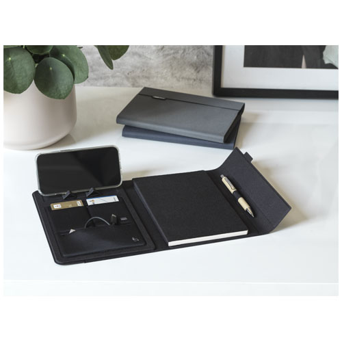 Padfólio s certifikáciou RCS Liberto je čiastočne vyrobené z recyklovaného spotrebiteľského polyesteru, vďaka čomu je toto padfólio udržateľnejšie, pretože pomáha znižovať spotrebu pôvodných surovín. Obsahuje pútko na pero, harmonikové vrecko a 64 krémovo sfarbených linkovaných listov s 80 g/m2 recyklovaným papierom z udržateľných zdrojov. Pero a ďalšie príslušenstvo zobrazené na fotografiách nie sú súčasťou tejto položky.