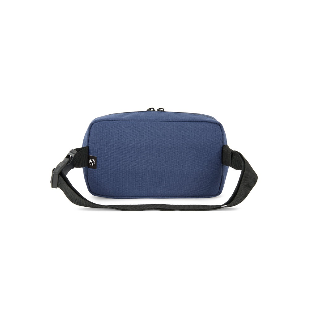 Taška cez pás z 600D recyklovaného polyesteru a podšívka z 210D recyklovaného polyesteru. Má 1 hlavnú priehradku a 1 predné vrecko. 220 x 130 x 70 mm