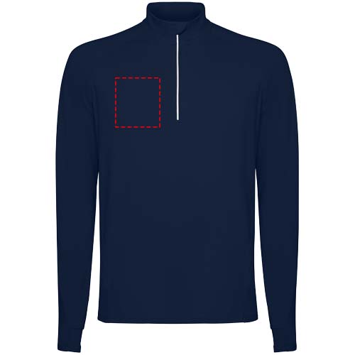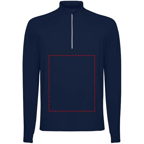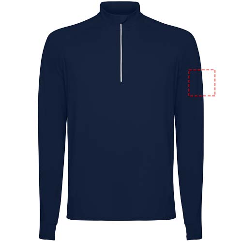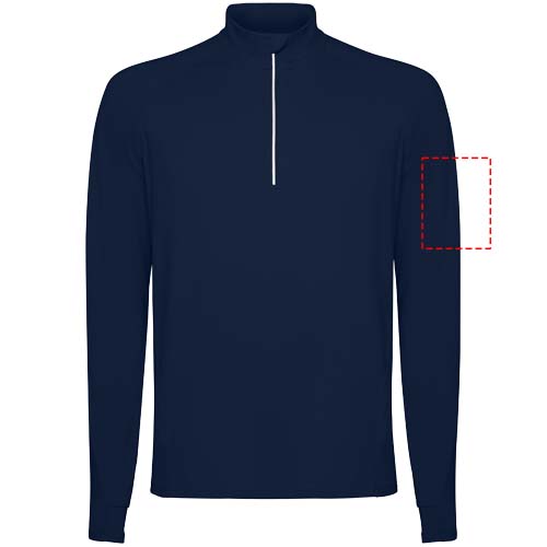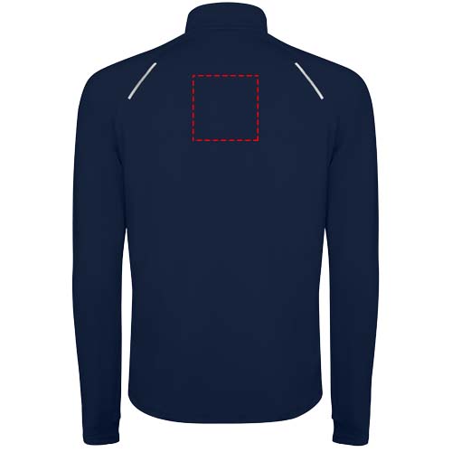 Pánska raglánová mikina s dlhým rukávom. Golier s obráteným dizajnom na polovičný zips s reflexnými detailmi. Zosilnené kryty švov. Manžety s otvormi na palce. Reflexné detaily na zadnej strane. Zadný lem je o niečo dlhší ako predný. Teplá kartáčovaná vnútorná tkanina.