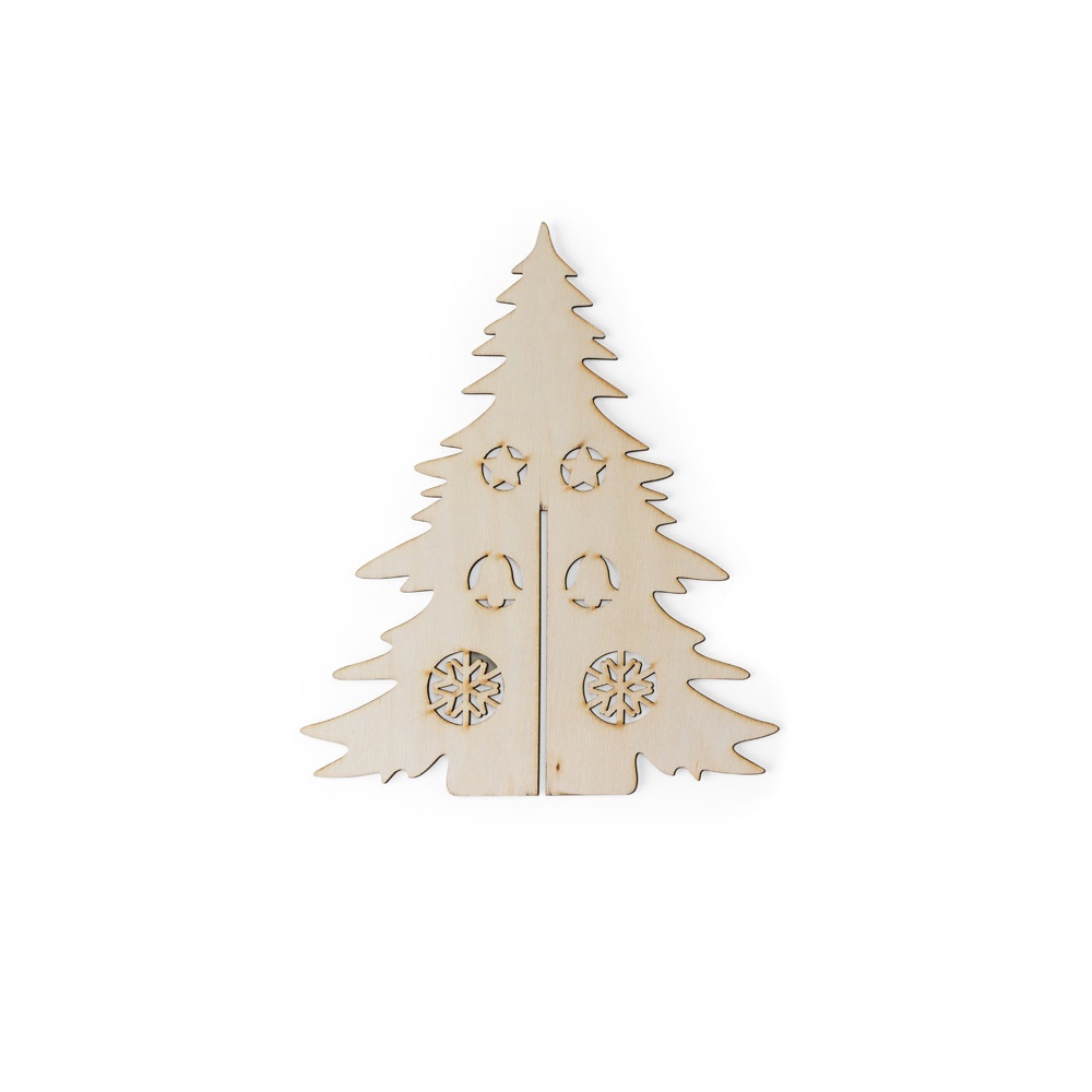 Skladací drevený vianočný stromček na vyfarbenie, vyrobený z FSC™ certifikovaného materiálu a iných kontrolovaných materiálov. Obsahuje 6 pasteliek ceruziek na maľovanie stromčeka a tvorenie podľa vlastnej fantázie. Dodávané v obálke zo 100% recyklovaného papiera. Keďže výrobok je vyrobený z prírodných materiálov, farba a výsledok tlače sa môžu medzi výrobkami líšiť. Zložený: 162 x 162 x 200 mm | Obálka: 180 x 210 mm