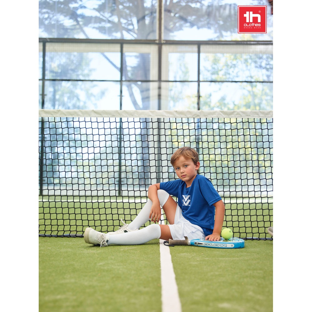 Stredne dlhé detské športové ponožky vyrobené z 95 % polyesteru a 5 % spandexu (100 g/m²). Zosilnená sieťovina v oblasti chodidla a členku chodidla, ktorá zabezpečuje väčšie pohodlie pri športovaní. Obsahuje vetraciu sieťovinu a elastickú gumu na manžetách. Veľkosti: 30-35