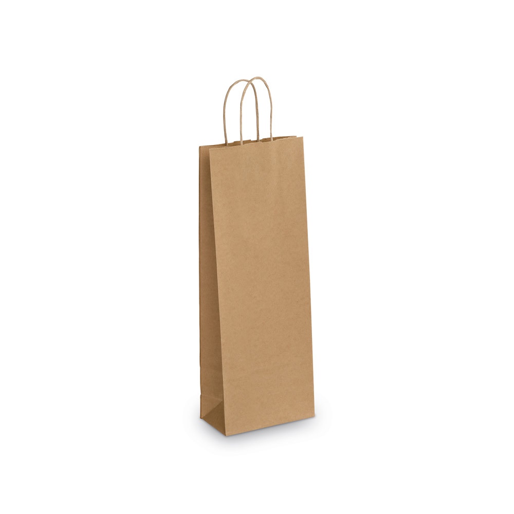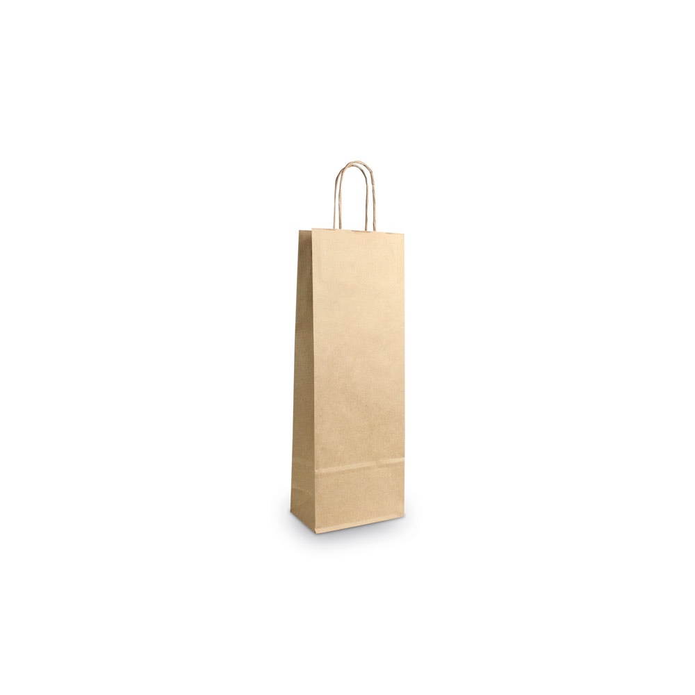 Taška na jednu fľašu vína z kraftového papiera, krútené papierové rukoväte. 140 × 390 × 80 mm