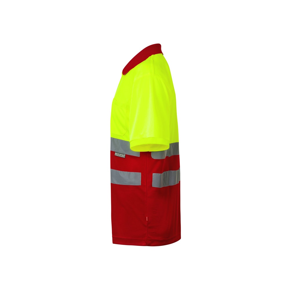 Dvojfarebná polokošeľa (160 g/m²) s krátkymi rukávmi, z polyesteru (100 %). Golier a gombíky v kontrastnej farbe. Rebrovaný golier. Reflexné pruhy na trupe. Obsahuje náprsné vrecko. Výrobok v súlade s EU Reg. 2016/425, certifikovaný EN20471 a trieda č. 1. Veľkosť: S, M, L, XL, 2XL, 3XL