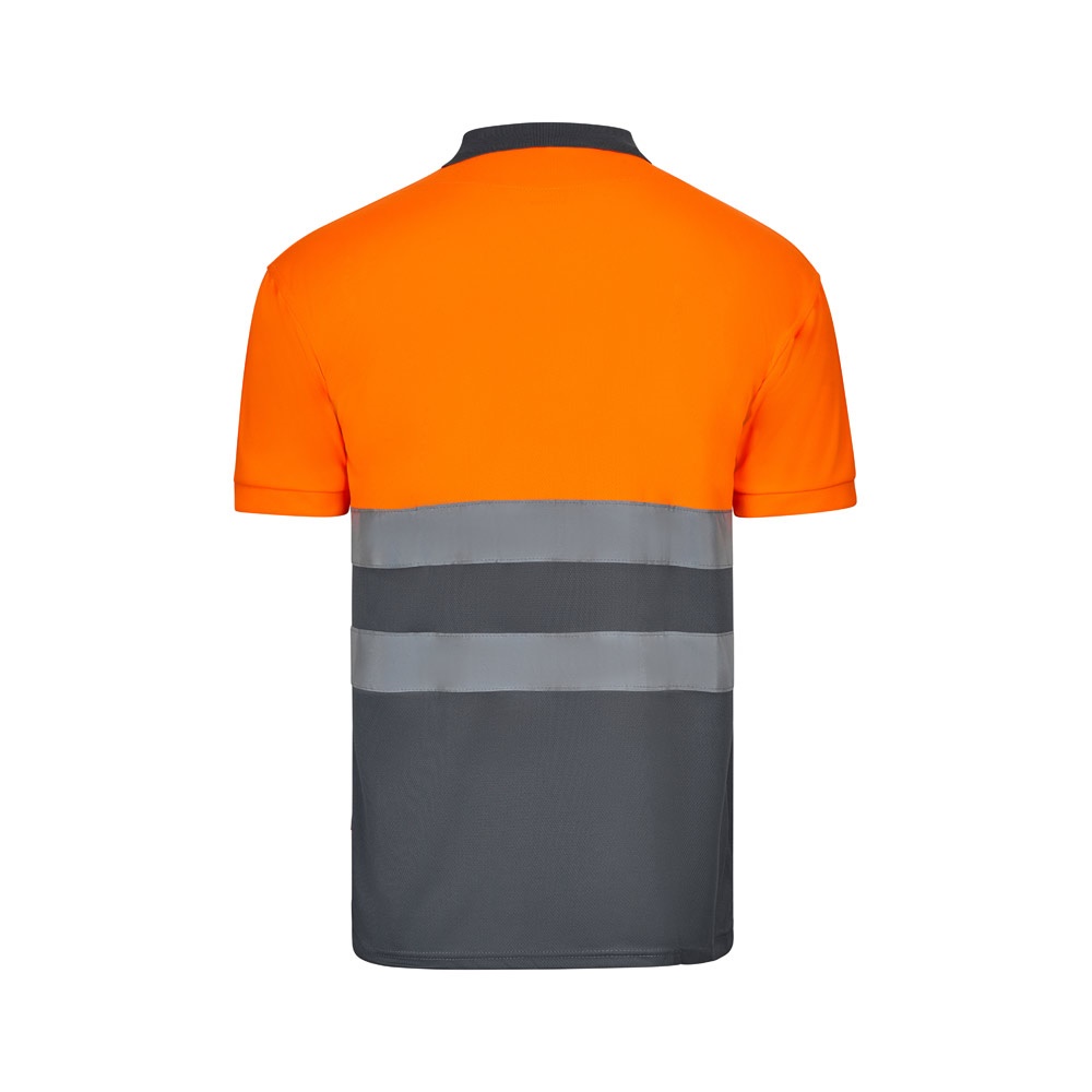 Dvojfarebná polokošeľa (160 g/m²) s krátkymi rukávmi, z polyesteru (100 %). Golier a gombíky v kontrastnej farbe. Rebrovaný golier. Reflexné pruhy na trupe. Obsahuje náprsné vrecko. Výrobok v súlade s EU Reg. 2016/425, certifikovaný EN20471 a trieda č. 1. Veľkosť: 4XL, 5XL
