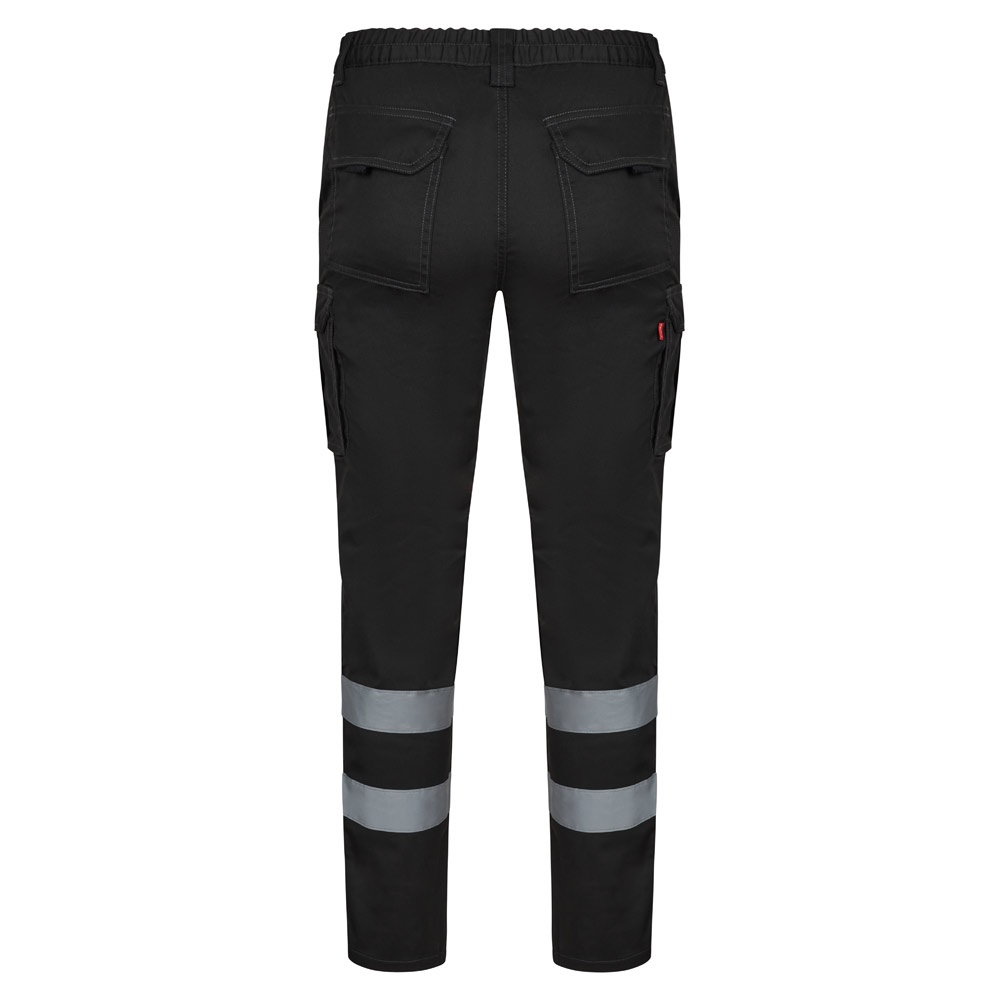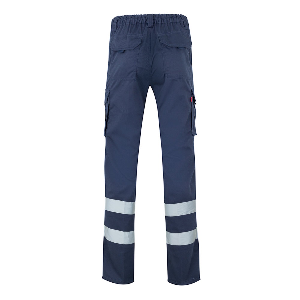 Strečové nohavice s viacerými vreckami (240 g/m²), bavlna (46 %), EME (38 %) a polyester (16 %). Elastický pás, reflexné pruhy na spodnej časti nohavíc a šesť vreciek (2 francúzske vrecká, 2 bočné vrecká a 2 zadné vrecká). Výrobok v súlade s EU Reg. 2016/425, certifikovaný EN17353 a trieda č. B2. Veľkosť: 34, 36, 38, 40, 42, 44, 46, 48, 50, 52, 54, 56, 58, 60