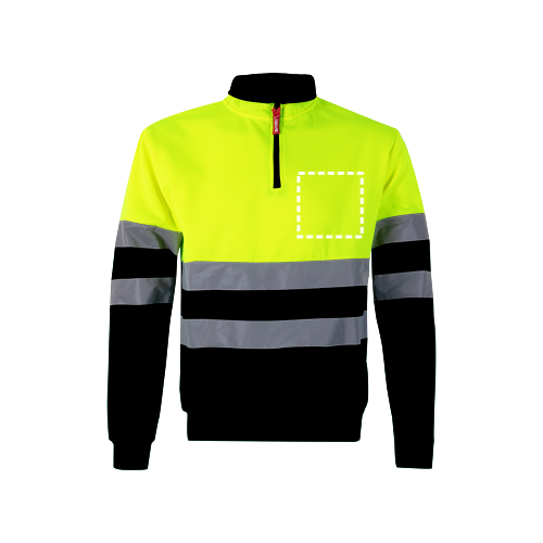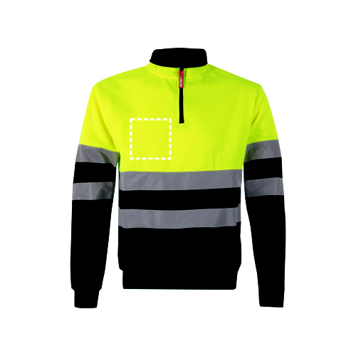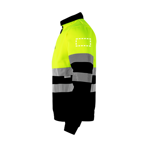 Dvojfarebná mikina (300 g/m²) z polyesterového fleecu (100 %). S vysokým golierom a polovičným zipsom. Rebrované manžety a spodný lem. Reflexné pruhy na trupe a rukávoch. Výrobok v súlade s EU Reg. 2016/425, certifikovaný EN20471 a trieda č. 1. Veľkosť: S, M, L, XL, 2XL, 3XL