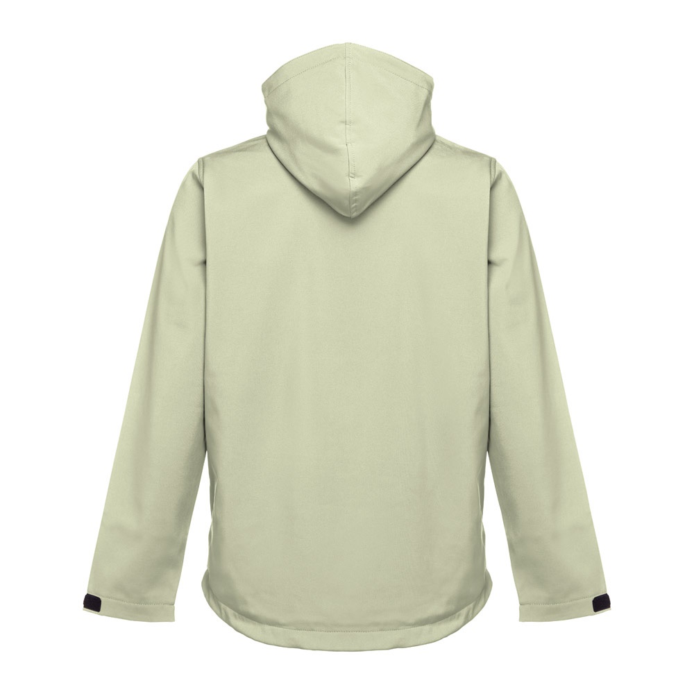 Pánska softshellová bunda s odnímateľnou kapucňou, 96% polyester a 4 % elastan (280 g/m²). Vodoodpudivý povrch (trieda III). Podšívka zo sieťoviny z materiálu polar. 2 predné vrecká na zips. Diagonálne náprsné vrecko na zips. Nastaviteľné manžety s pásikom na suchý zips. Odnímateľná kapucňa so sťahovacou šnúrkou a opaskom na suchý zips pre upevnenie k golieri. Zaoblený dolný okraj zadného dielu.a. Veľkosti: S, M, L, XL, XXL